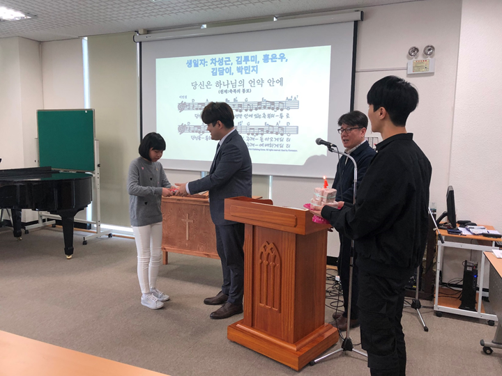 <분기별 개근자 시상식과 4월 생일축하! 축하해요~>