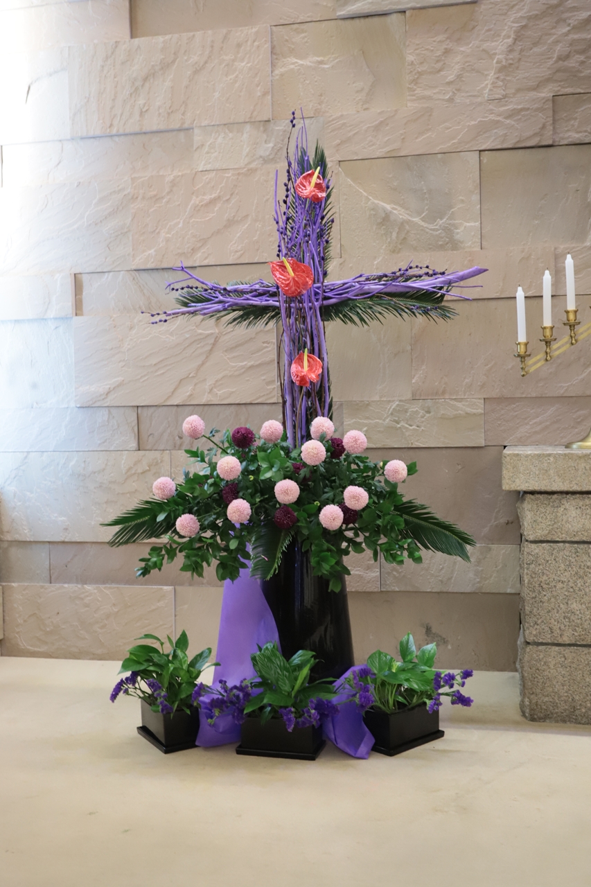 4월 14일 주일 강단 꽃꽂이 - 미화부