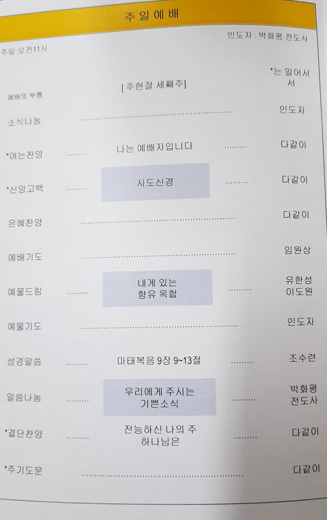 예배순서 안내