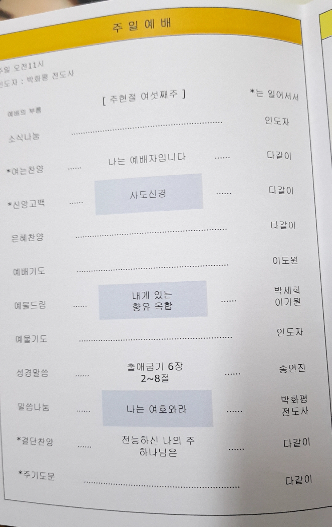 예배순서 안내
