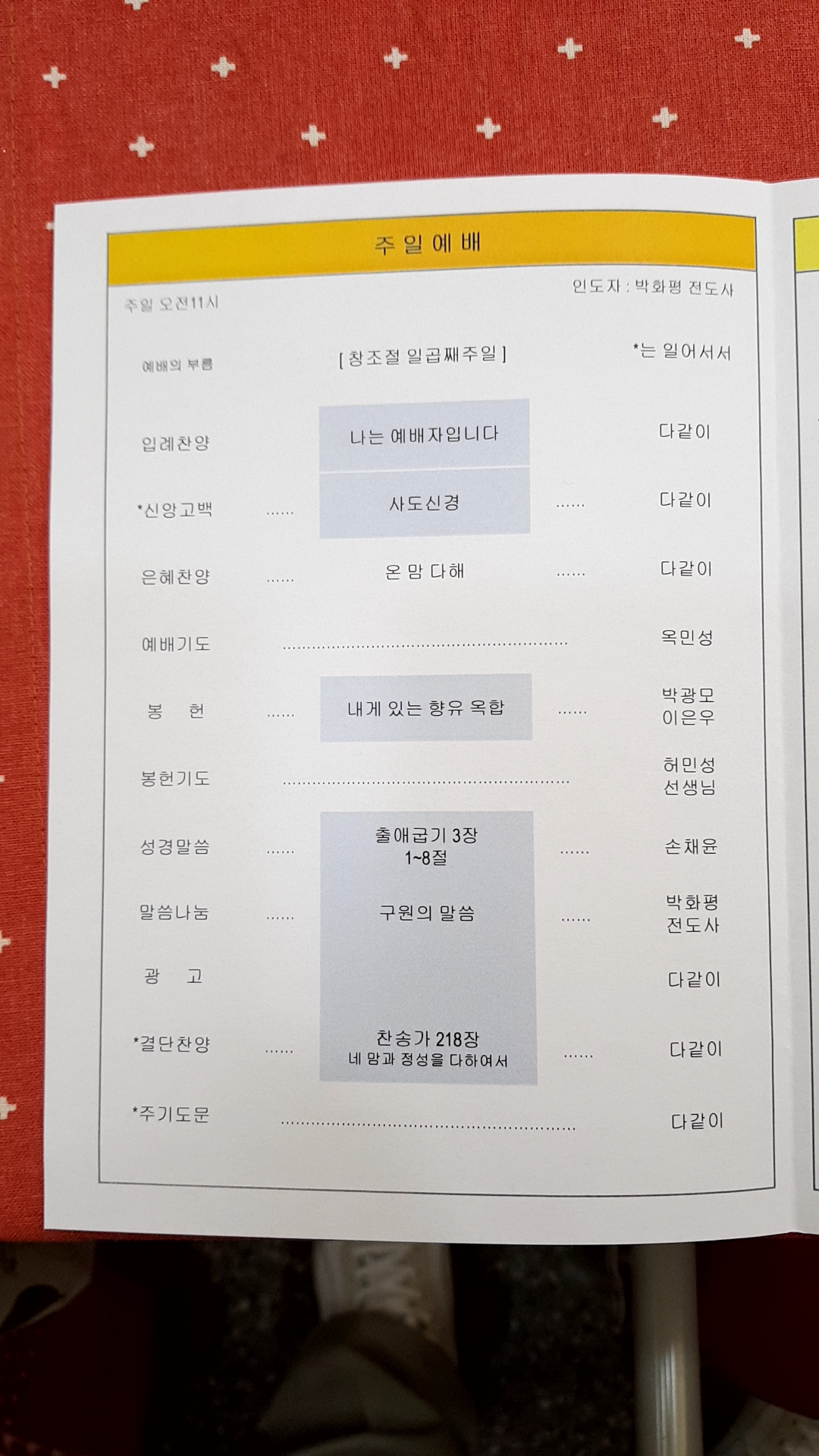 예배순서 안내