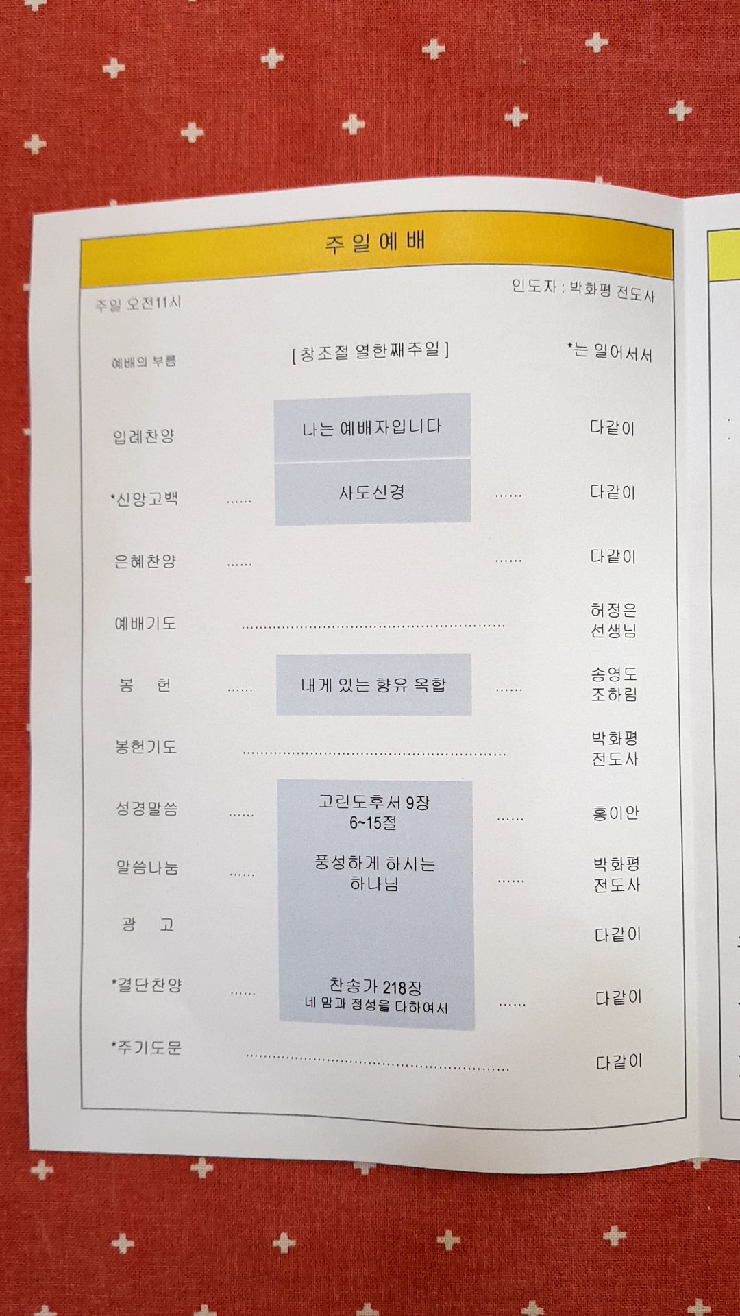 예배순서 안내