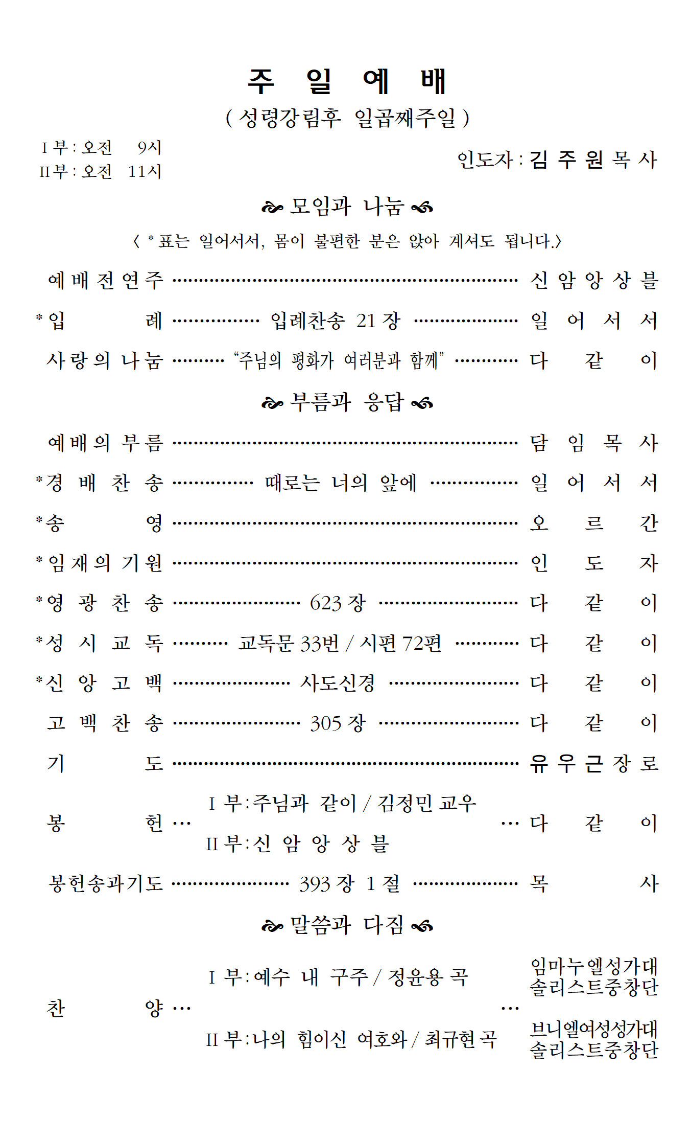 예배순서 안내