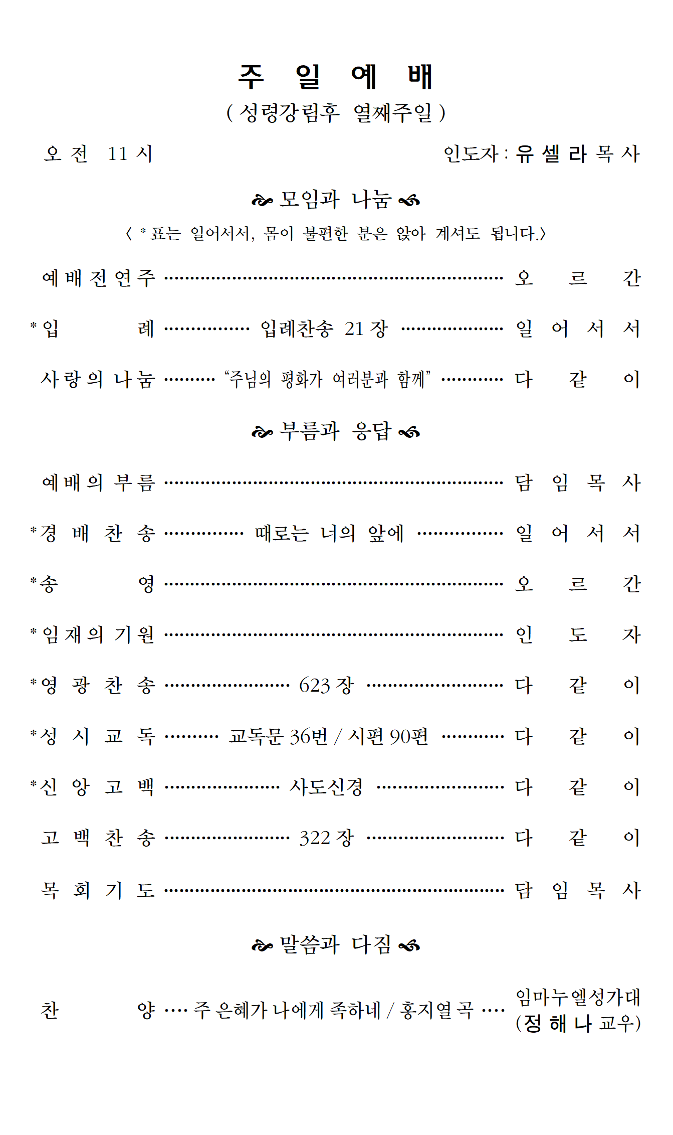 예배순서 안내