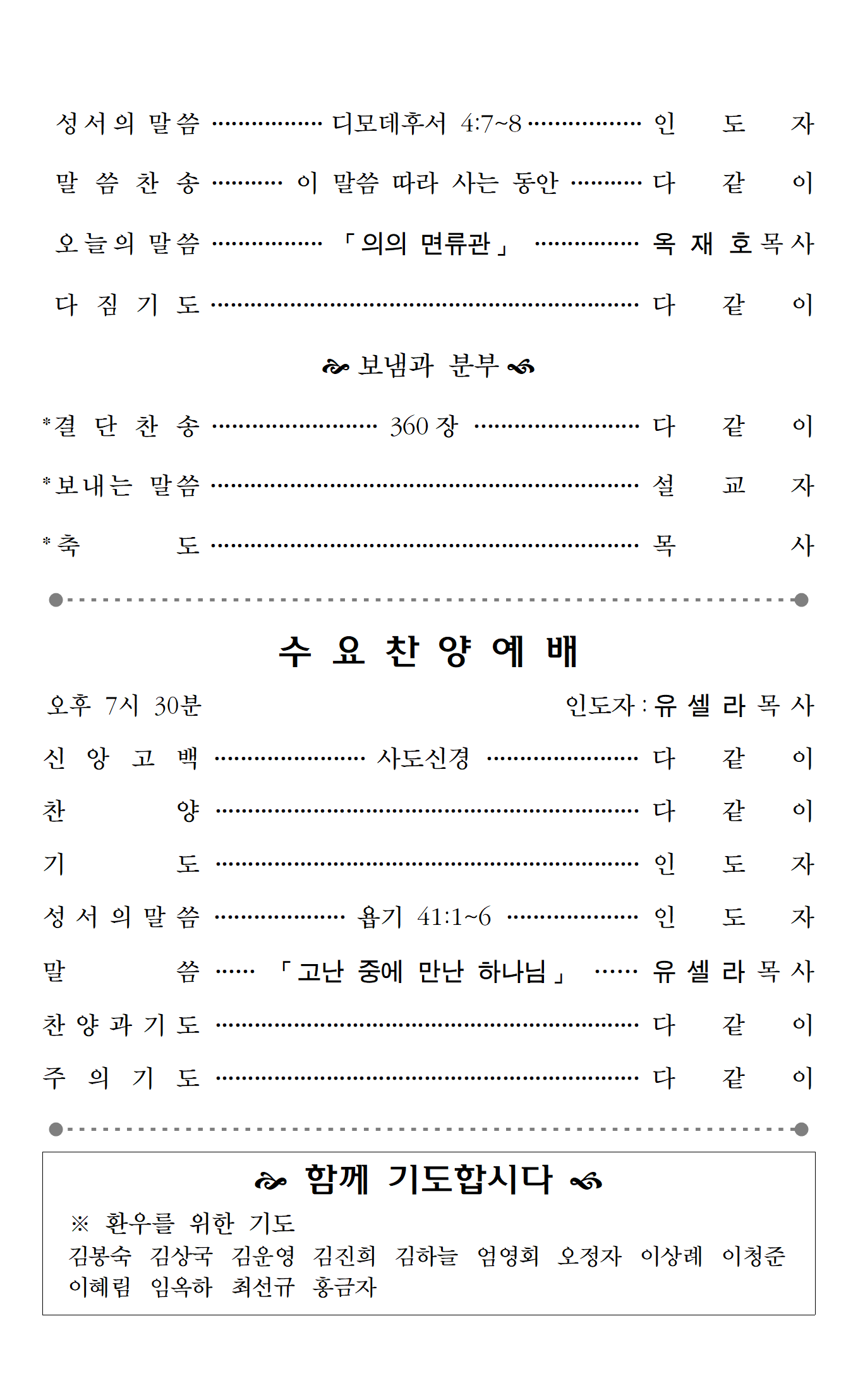 말씀 및 예배