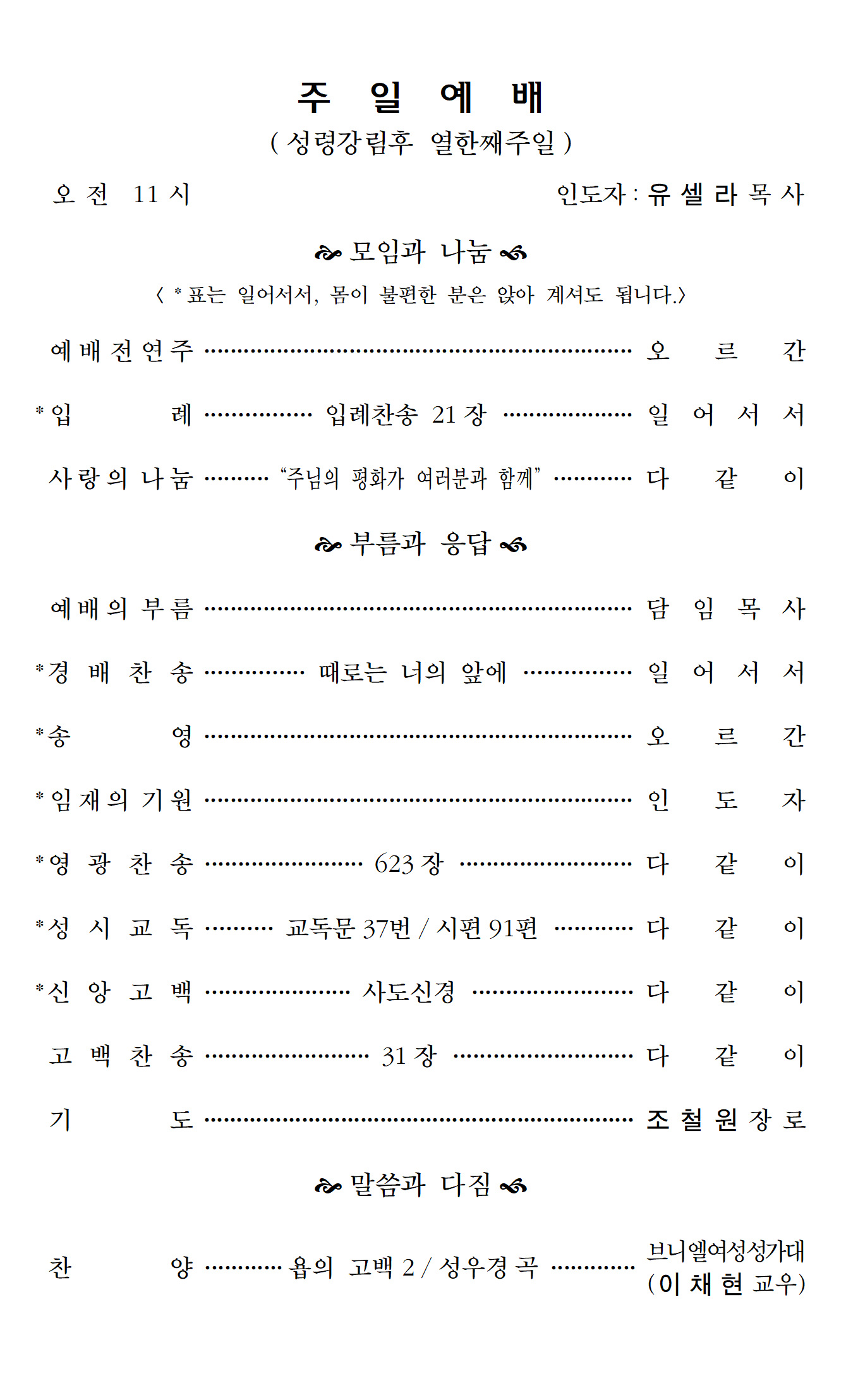 예배순서 안내